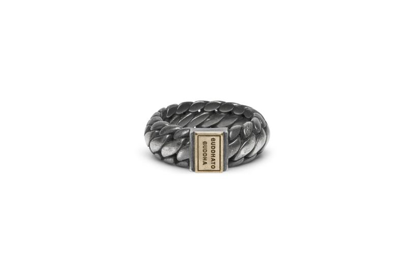 Het ontwerp van de Ben Small ring is aangepast met een unieke matte rhodium finishing en 18k geelgouden details. Jouw levensstijl en de natuurlijke elementen bepalen de look van je sieraad in de loop van tijd en creëren een vintage en ruwe uitstraling die een persoonlijk statement is van jouw reis door het leven. Deze ring valt in de categorie brede ringen.