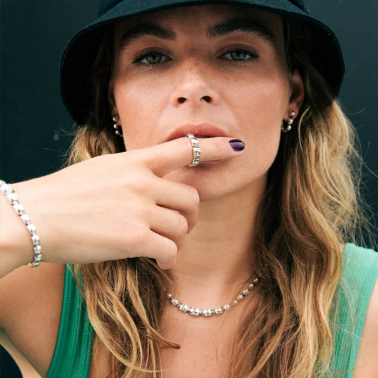 De iconische Batul schakel, met een vernieuwend design. Een tijdloze klassieker met onze kenmerkende licht aangebrachte zilveren oxidatie look. Deze Refined Batul collectie bestaat uit een ketting, armband, ring en oorbellen.