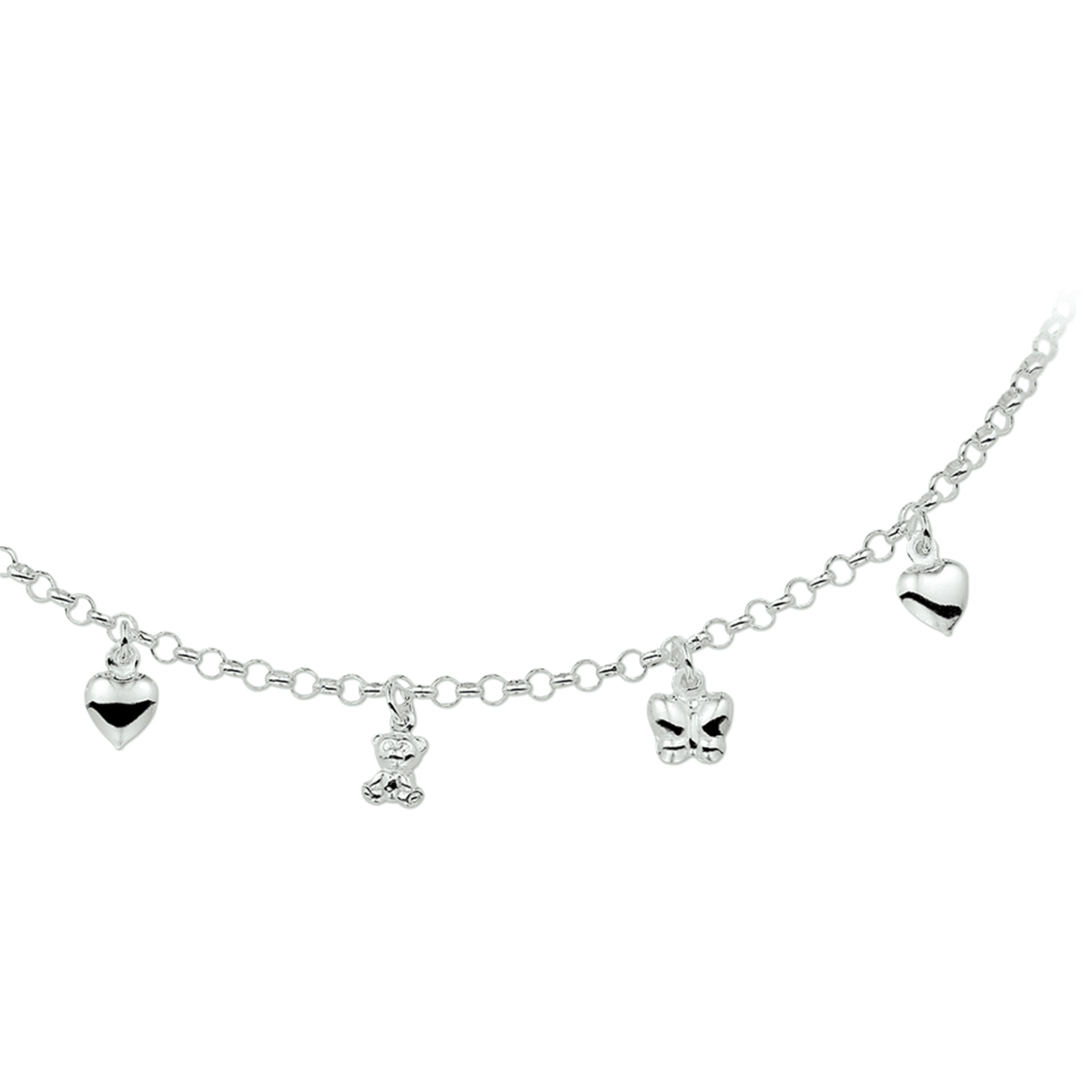 Zilveren collier met diverse bedels van dieren.