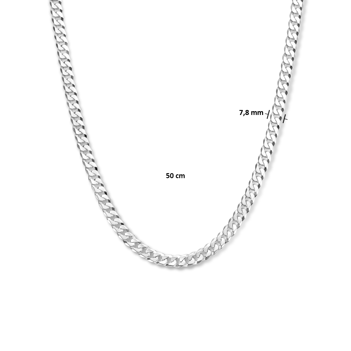 925 Zilveren collier met een gourmette schakel van 7.8mm. Uitgevoerd met een karabijn sluiting.
