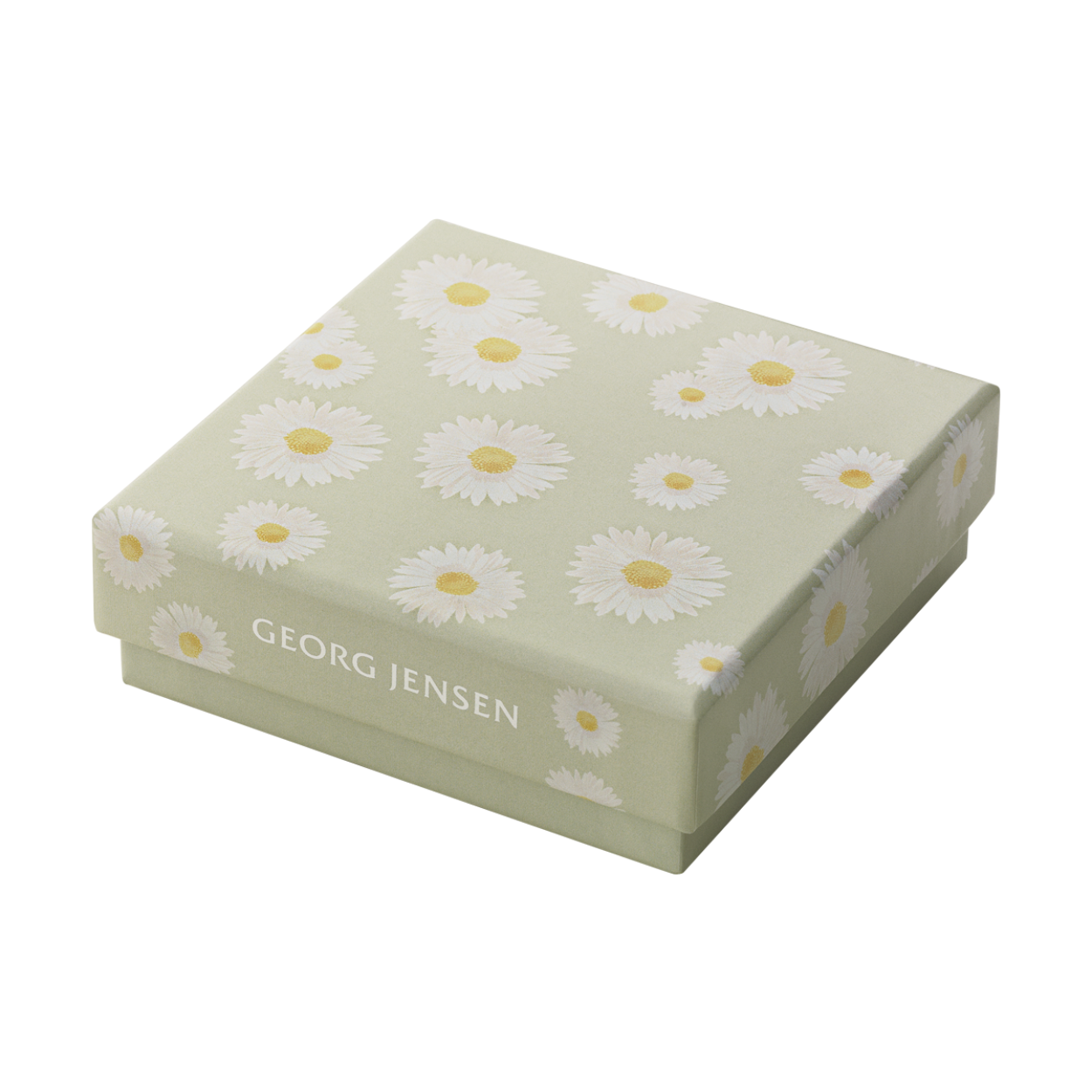 The Daisy Bracelet in rhodium-plated sterling silver is tastefully pared back, with two daisies of different sizes featuring hand-painted blue and green enamel petals and a sterling silver chain. As part of the Daisy collection, it was designed in collaboration with Stine Goya and serves as a refreshing twist on the iconic collection from the 1940s. The bracelet can be shortened to fit the wrist.