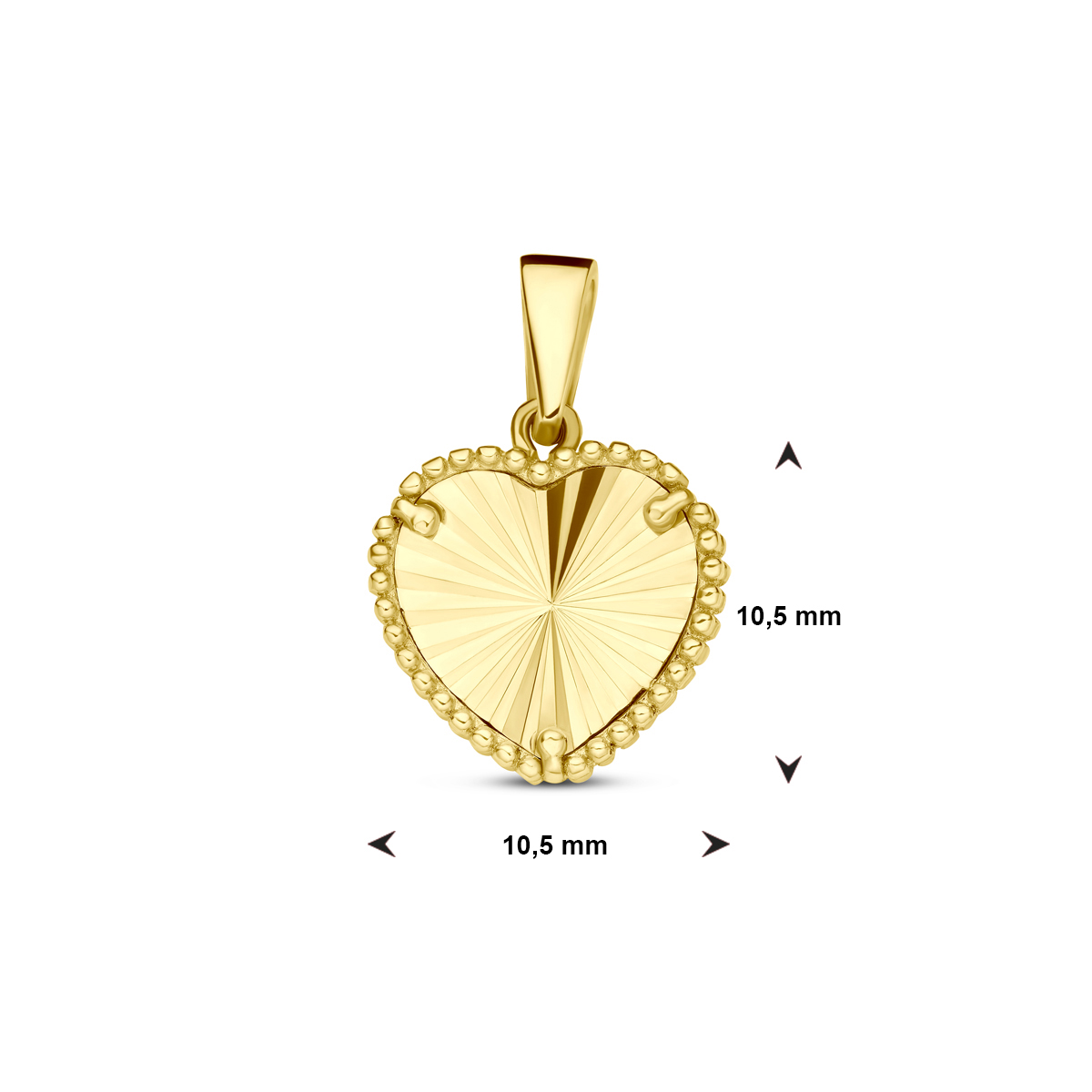 14k Geelgouden hanger uitgevoerd met een hart. De hanger heeft een totale hoogte van 16mm.