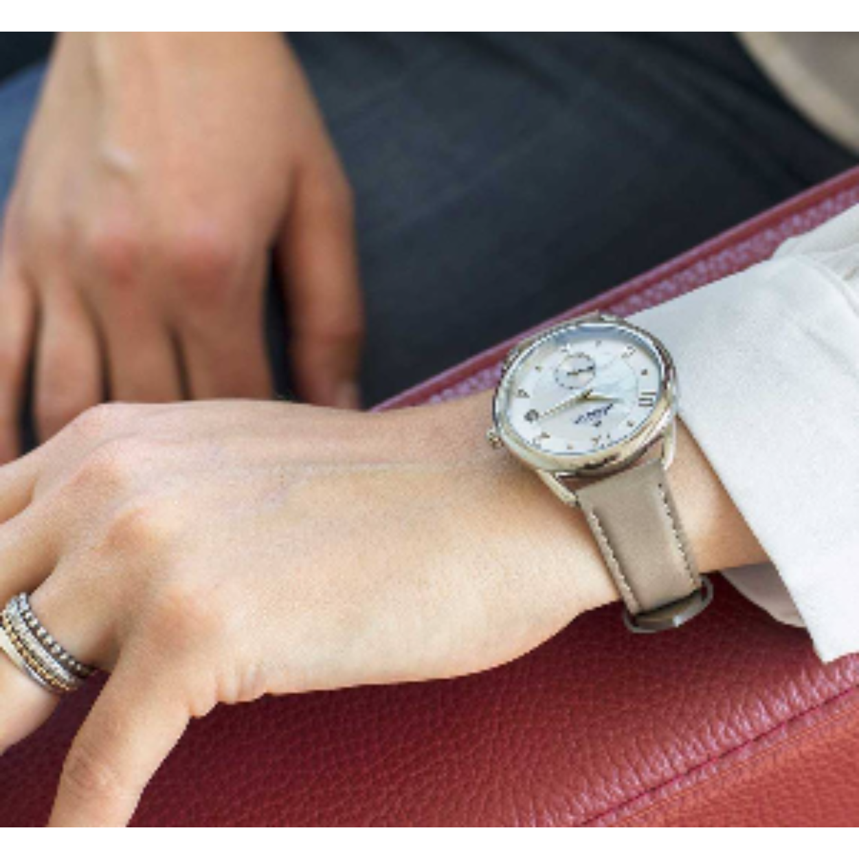 Gebogen lijnen en een vleugje modernisme voor deze Equinoxe-collectie, zowel urban als klassiek. Met een echt parelmoeren wijzerplaat versierd met Arabische cijfers en uitgerust met een leren band, begeleidt dit Herbelin-horloge de damespols met onderscheiding.