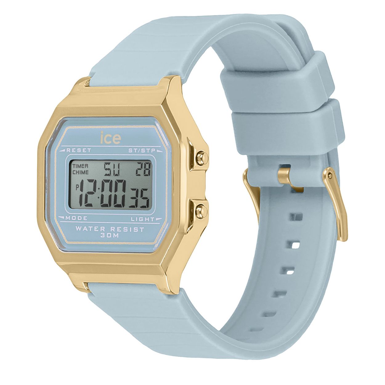 Dit is een horloge van het merk Ice-Watch uit de serie ICE digit retro. Met een horlogekast gemaakt van kunststof en een blauwe band van siliconen.