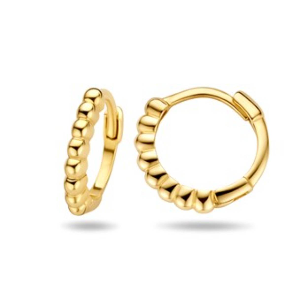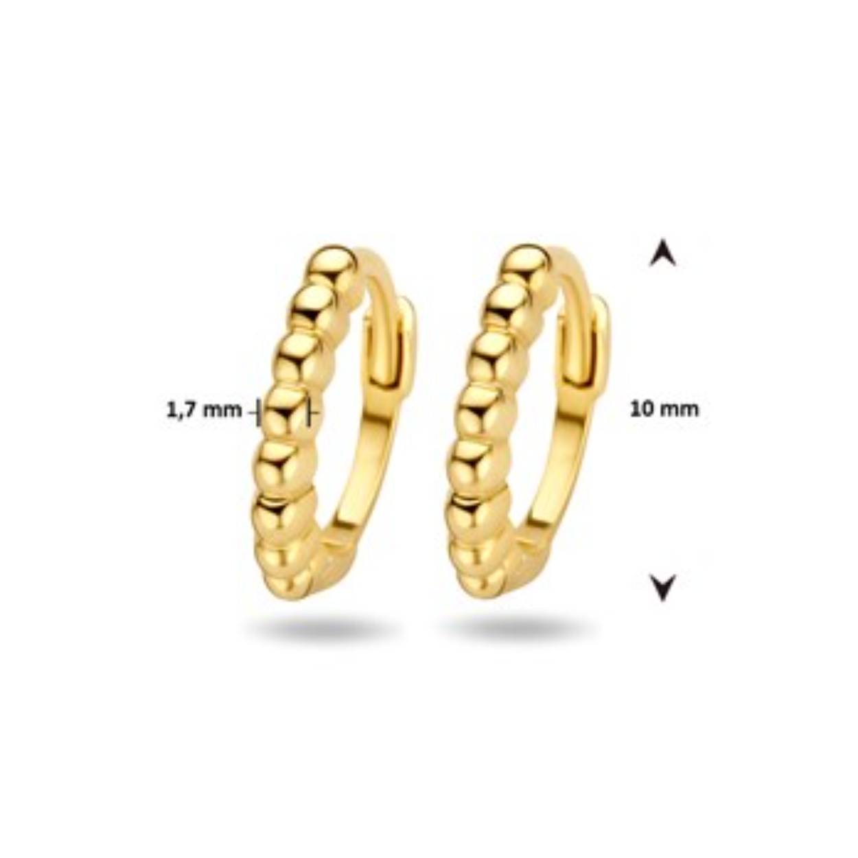 14k Geelgouden klapoorringen uitgevoerd met bolletjes. De oorringen hebben een diameter van 10mm en een dikte van 1.7mm.