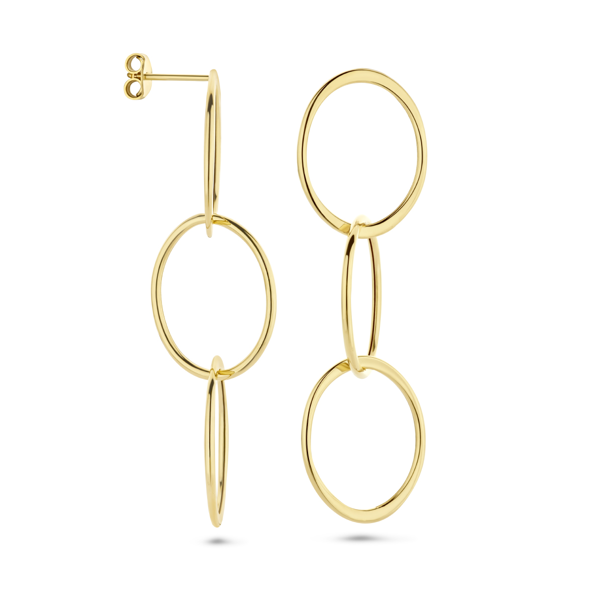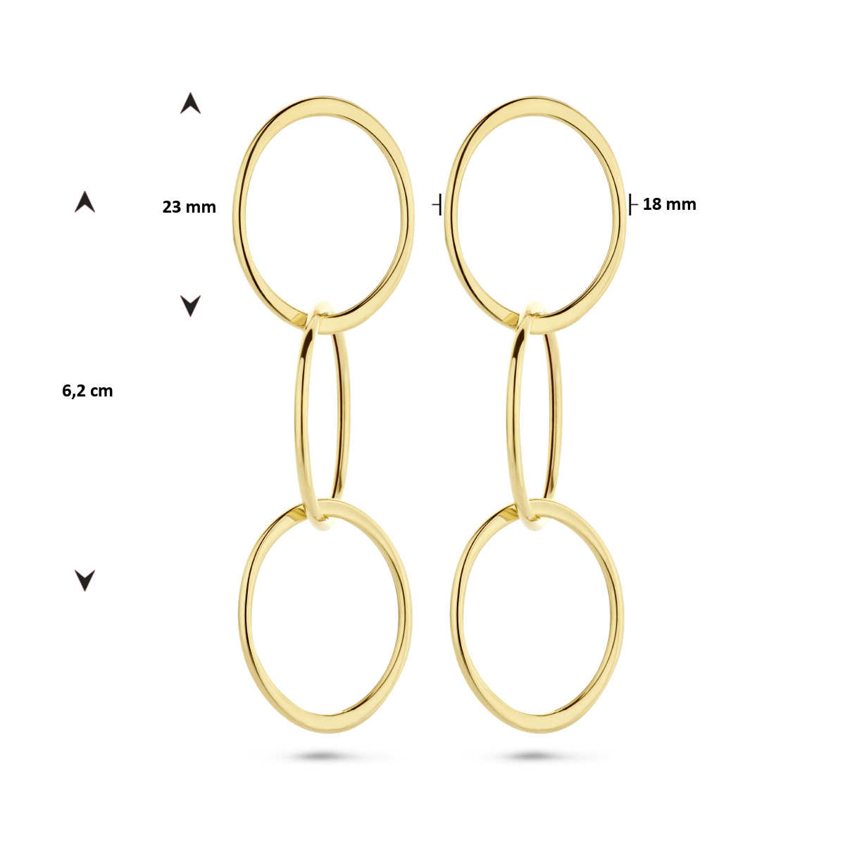 14k Geelgouden open ovaaltjes oorhangers met een totale hoogte van 62mm.