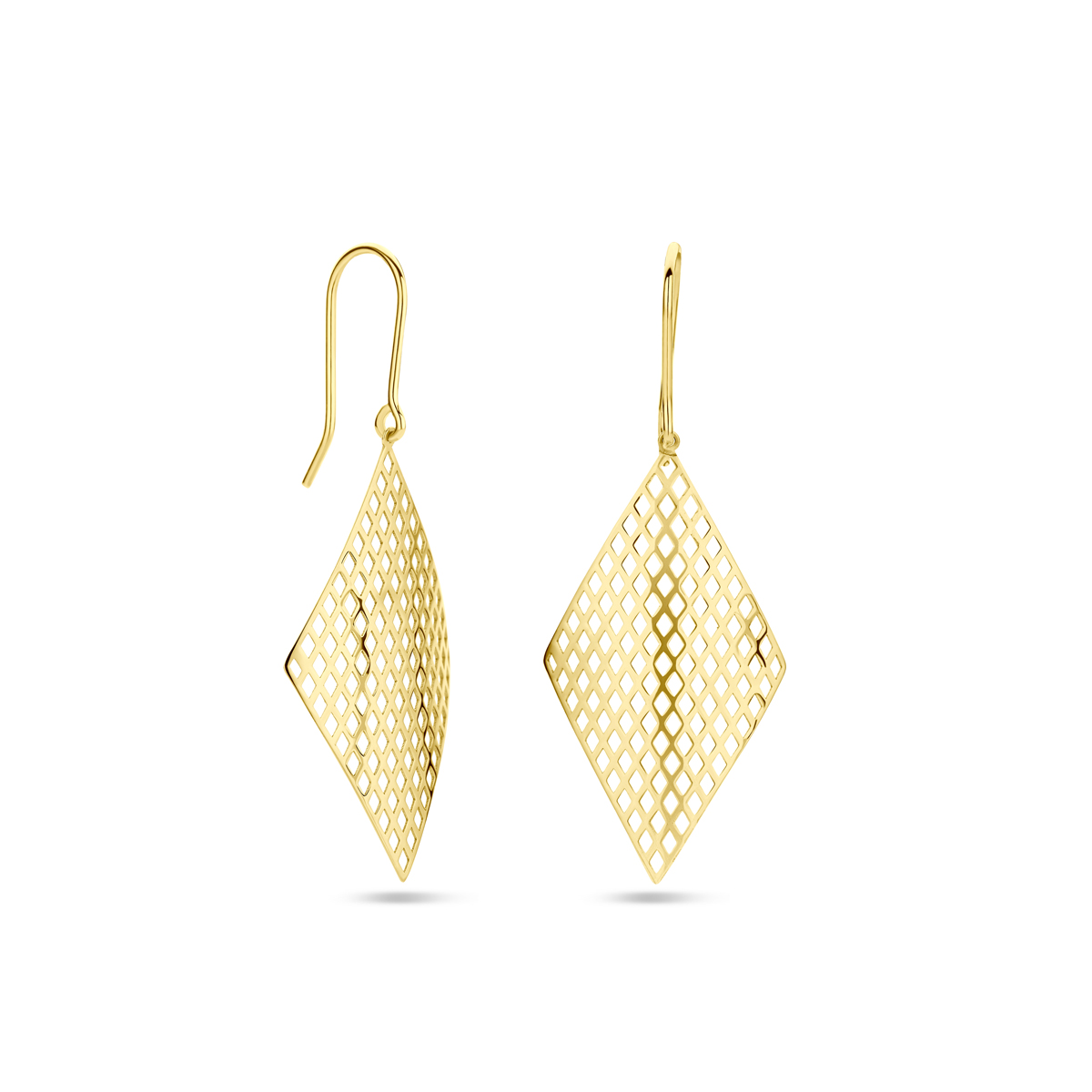14k Geelgouden oorhangers in de vorm van een ruit. De oorhangers hebben een totale hoogte van 46mm.