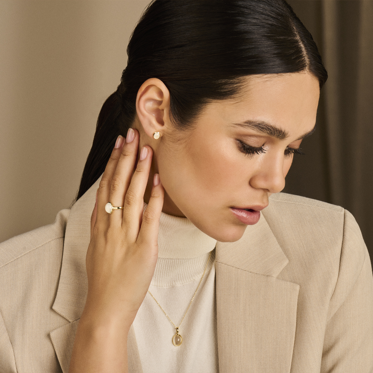 14k Geelgouden oorknoppen uitgevoerd met schitterende maansteen. De oorknoppen hebben een afmeting van 9x6.5mm.