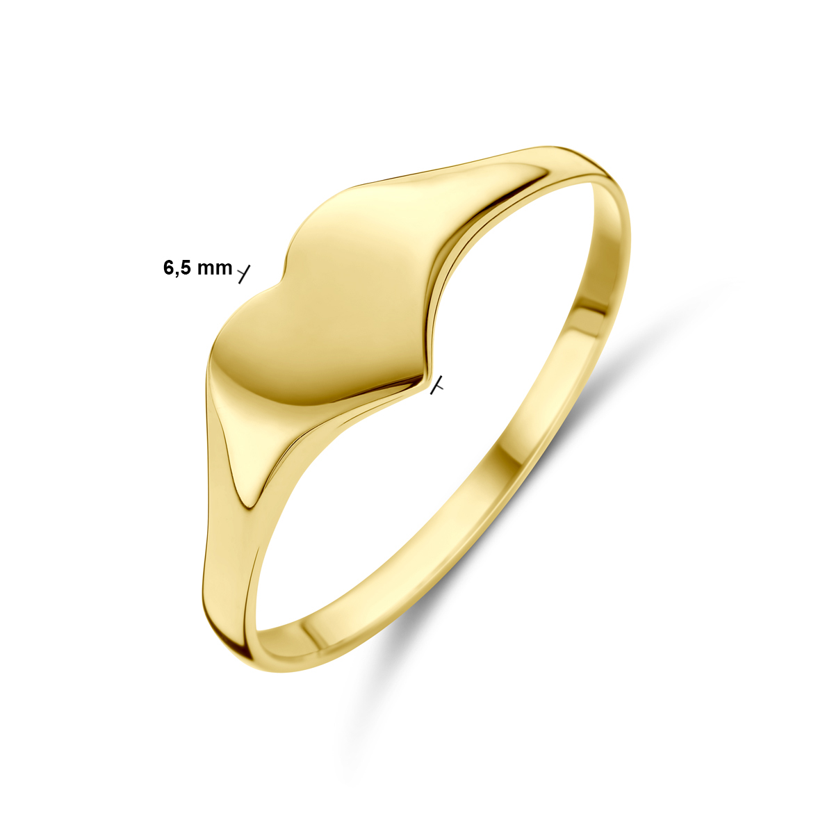 14k Geelgouden ring uitgevoerd met een hartje. De ring een breedte van 6.5mm.